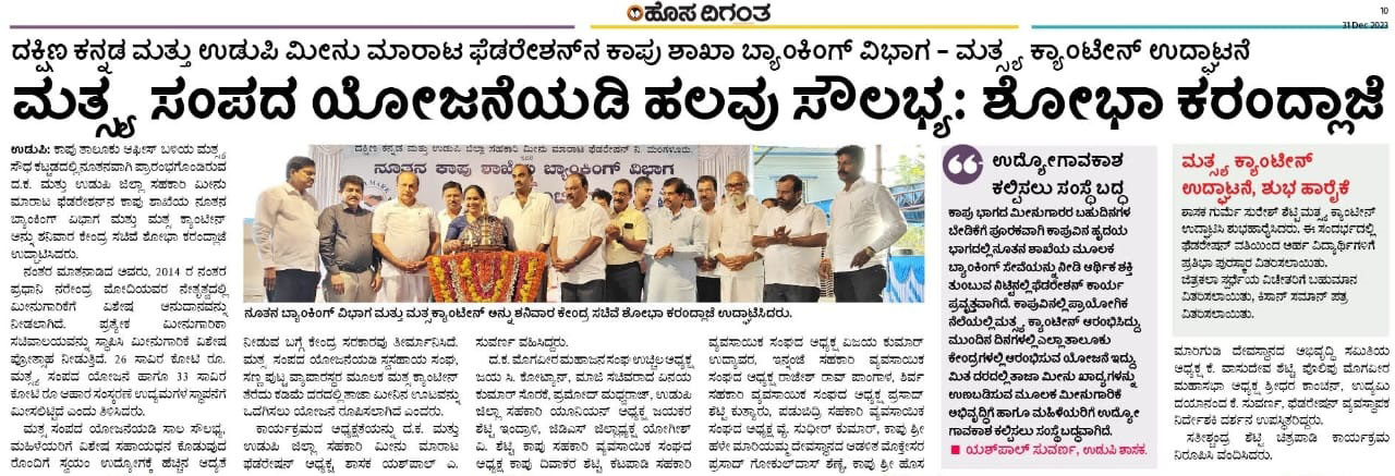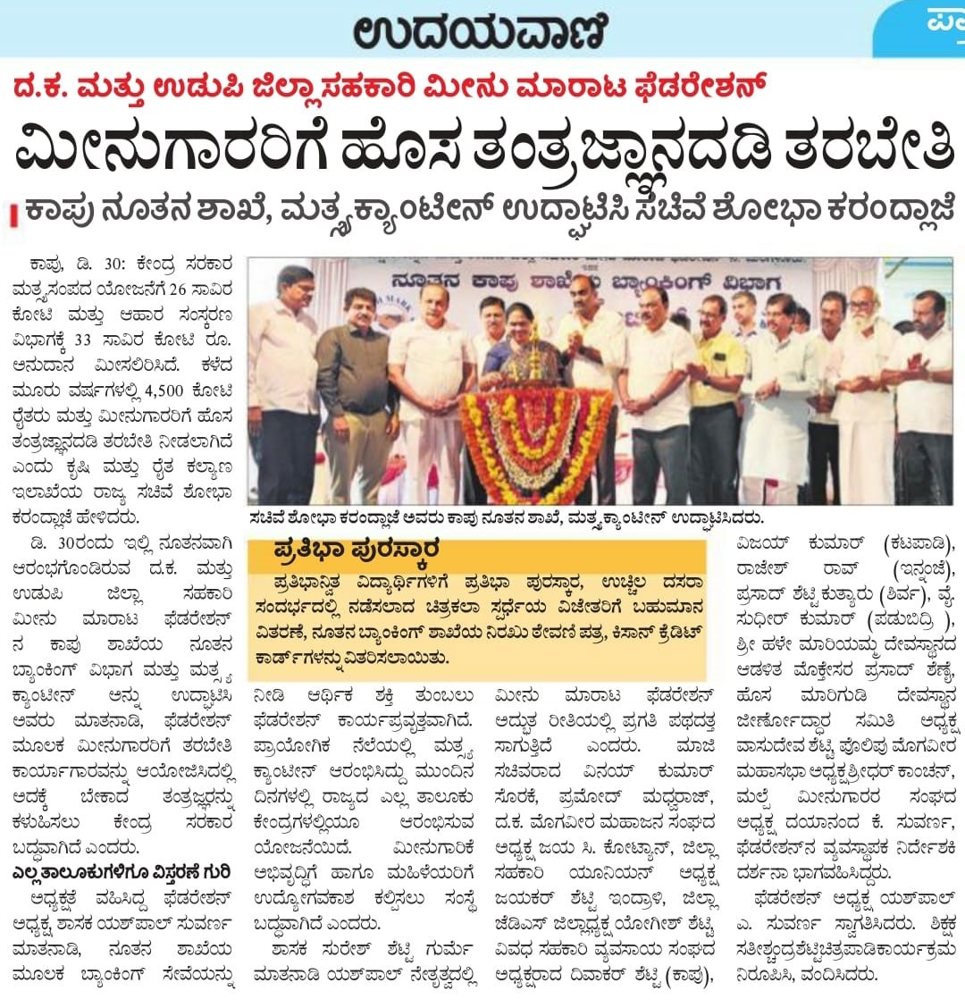ದಿನಾಂಕ: 07.02.2024 ರಂದು ಪ್ರಧಾನ ಮಂತ್ರಿ ಮತ್ಸ್ಯಸಂಪದ ಯೋಜನೆಯಡಿಯಲ್ಲಿ ಮೀನುಗಾರಿಕೆ ಸಚಿವಾಲಯ, ಪಶುಸಂಗೋಪನೆ ಮತ್ತು ಹೈನುಗಾರಿಕೆ ಇಲಾಖೆ, ಭಾರತ ಸರ್ಕಾರ ಮತ್ತು ದ.ಕ ಮತ್ತು ಉಡುಪಿ ಜಿಲ್ಲಾ ಸಹಕಾರಿ ಮೀನು ಮಾರಾಟ ಫೆಡರೇಶನ್ ಜಂಟಿಯಾಗಿ ಆಯೋಜಿಸಿದ ಸದಸ್ಯ ಸಹಕಾರಿ ಸಂಘಗಳ ಪದಾಧಿಕಾರಿಗಳಿಗೆ “ಮೀನುಗಾರಿಕೆ ವಲಯದಲ್ಲಿ ದೇಶೀಯ ಮಾರುಕಟ್ಟೆಗೆ ಉತ್ತೇಜನ” ಕುರಿತು ತರಬೇತಿ ಕಾರ್ಯಕ್ರಮ ಬಡಗಬೆಟ್ಟು ಕ್ರೆಡಿಟ್ ಕೋ-ಆಪರೇಟಿವ್ ಸೊಸೈಟಿ ಉಡುಪಿ ಇದರ ಜಗನ್ನಾಥ ಸಭಾಂಗಣದಲ್ಲಿ ಜರಗಿತು.