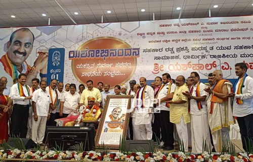 President of the S.K and Udupi Dist Cooperative Fish Marketing Federation Ltd, Mangalore Shri Yashpal A Suvarna receiving the “National level Best Cooperative Award” on the occasion of World Fisheries Day (Nov 21, 2023) at Ahmedabad, Gujarat from Shri Parshottam Rupala Ji Honorable Minister of Fisheries, Animal Husbandry and Dairying, Government of India.
