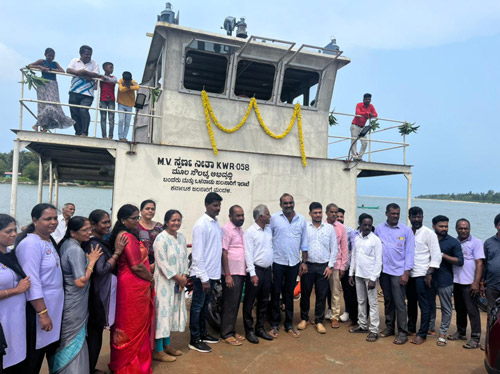 Inauguration of ferry services from Hungarkatta to Kodibengre in a 50 ton Barge; in the Presence of Shri Yashpal A Suvarna MLA, Udupi Constituency and President, S.K and Udupi District Co-operative Fish Marketing Federation Mulihithlu, Mangalore; Directors of Federation; Staff and Public.